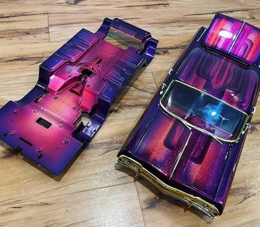 Complete SHOW BODY Kit- Optional multi colors over Metal Flakes- Kandy & Pearls- Choose BASE Color Silver or Gold Metallic. Includes Interior Pack & Under Chassis painted all to match. (New body kit included)